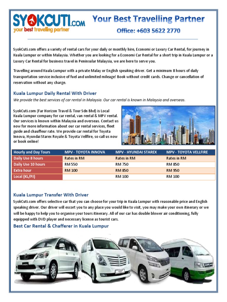Related : Kereta Sewa Starex Kuala Lumpur : Juga tidak dilupakan warga korporat yang datang ke kuala lumpur bagi menghadiri mesyuarat dan acara penting..